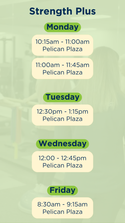 All of our Strength Plus are 45 Minutes long at Pelican Plaza.
